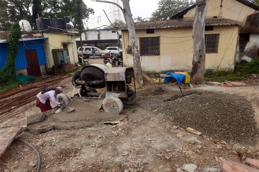 कंक्रीट की गुणवत्ता पर उठ रहे सवाल,पांच मजदूर कर रहे करोड़ों का कार्य,कंक्रीट में हो रहा है बजरी और डस्ट का उपयोग,