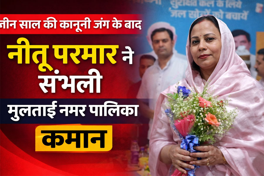 मुलताई। नगर पालिका अध्यक्ष पद को लेकर लगभग साढ़े तीन वर्षों तक चली लंबी कानूनी जंग का आखिरकार पटाक्षेप हो गया। स्थानीय न्यायालय से लेकर हाईकोर्ट और सुप्रीम कोर्ट तक चले इस बहुचर्चित मामले में हाईकोर्ट के फैसले के पालन में नीतू प्रहलाद परमार ने आज नगर पालिका अध्यक्ष का पदभार विधिवत ग्रहण कर लिया।