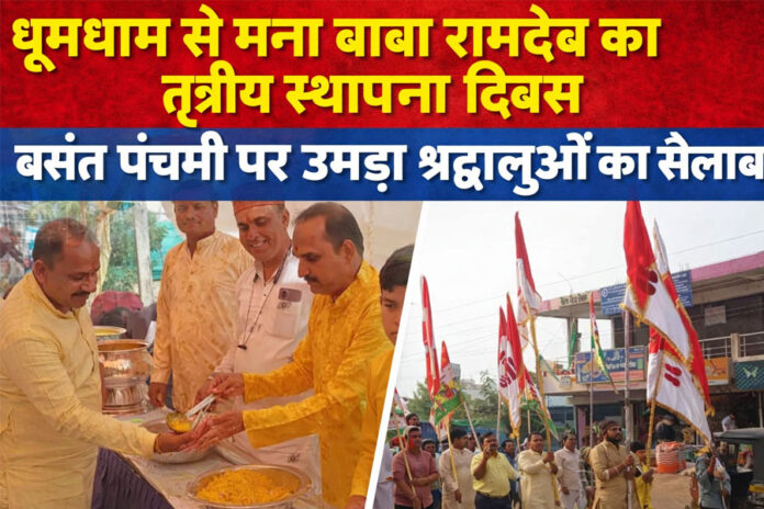 मुलताई। नगर में शुक्रवार को बाबा रामदेवजी का तृतीय स्थापना दिवस एवं बसंत पंचमी का पर्व श्रद्धा और उल्लास के साथ बड़े ही धूमधाम से मनाया गया।