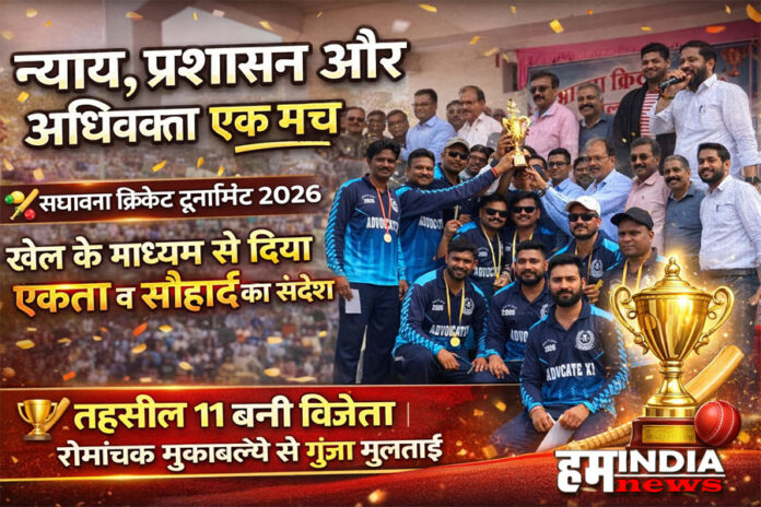मुलताई। नगर के हाई स्कूल ग्राउंड में आयोजित सद्भावना क्रिकेट टूर्नामेंट 2026 का सफल, अनुशासित एवं मैत्रीपूर्ण वातावरण में समापन हुआ। न्यायपालिका, प्रशासन एवं अधिवक्ता समुदाय के मध्य खेली गई इस प्रतियोगिता ने खेल भावना के साथ आपसी समन्वय, सौहार्द एवं सहयोग की मिसाल प्रस्तुत की।