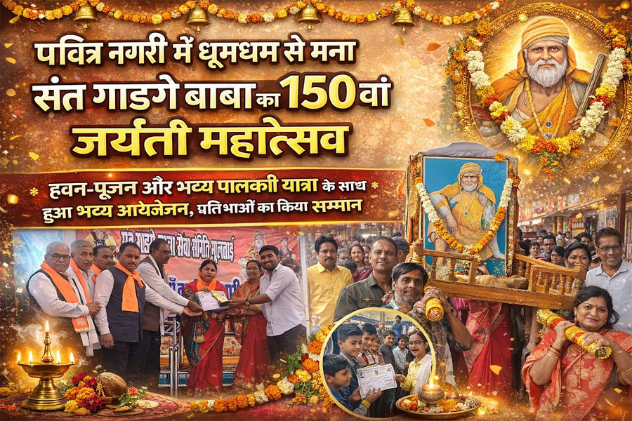 मुलताई। सूर्यपुत्री मां ताप्ती की पावन नगरी में स्वच्छता अभियान के प्रेरणास्रोत एवं समाज सुधारक संत गाडगे बाबा का 150वां जन्मोत्सव श्रद्धा, उत्साह और सामाजिक एकजुटता के साथ मनाया गया। कार्यक्रम में बड़ी संख्या में समाज बंधुओं की गरिमामयी उपस्थिति रही।