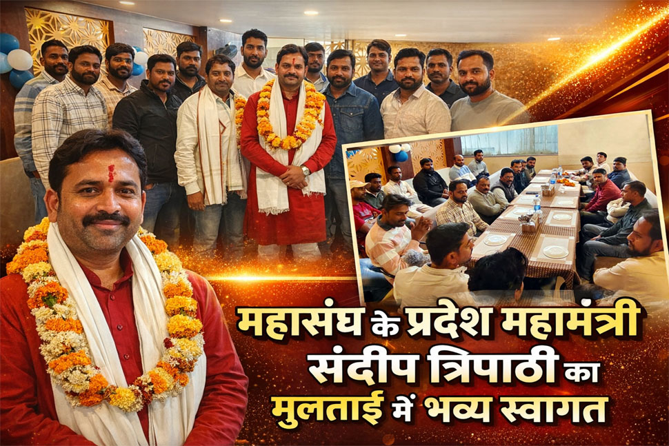 मुलताई।भा. प्र. बिजली कर्मचारी महासंघ के प्रदेश महामंत्री संदीप त्रिपाठी का जाम–सांवली जाते समय मुलताई में अल्प प्रवास के दौरान स्थानीय कृष्णा होटल में भव्य स्वागत किया गया। इस अवसर पर बिजली कर्मचारी महासंघ मुलताई के पदाधिकारियों एवं कर्मचारियों ने शाल-श्रीफल भेंट कर उनका आत्मीय अभिनंदन किया।