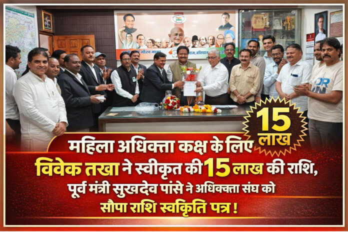 पूर्व मंत्री सुखदेव पांसे ने अधिवक्ता संघ को सौपा राशि स्वीकृति पत्र